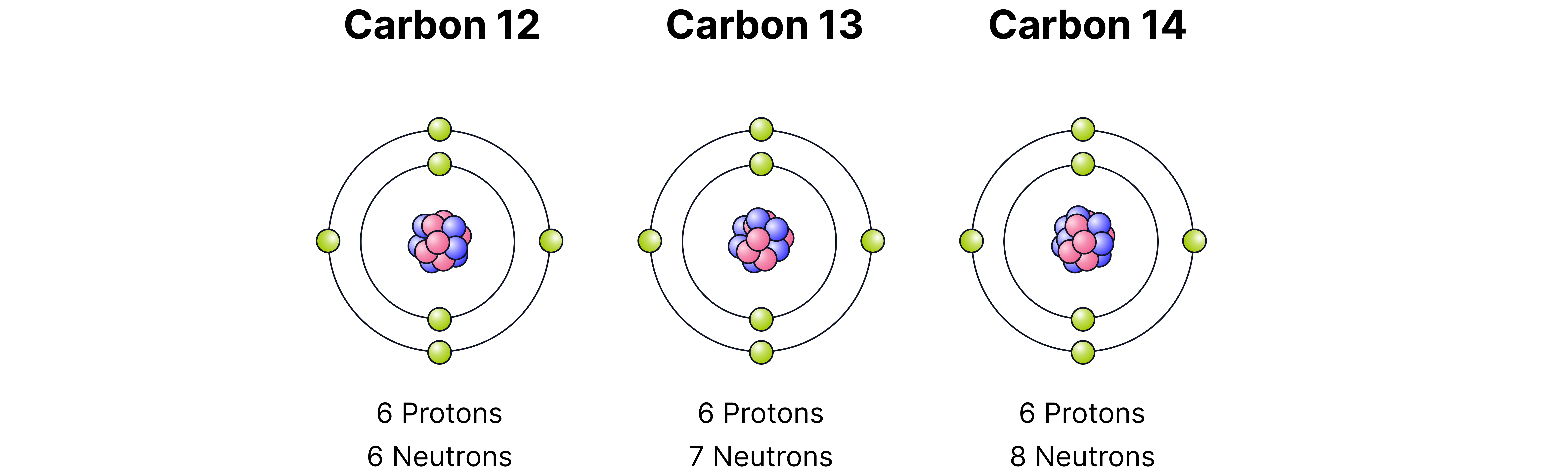 Example: Carbon-12 (), carbon-13, and carbon-14 () are isotopes of carbon.