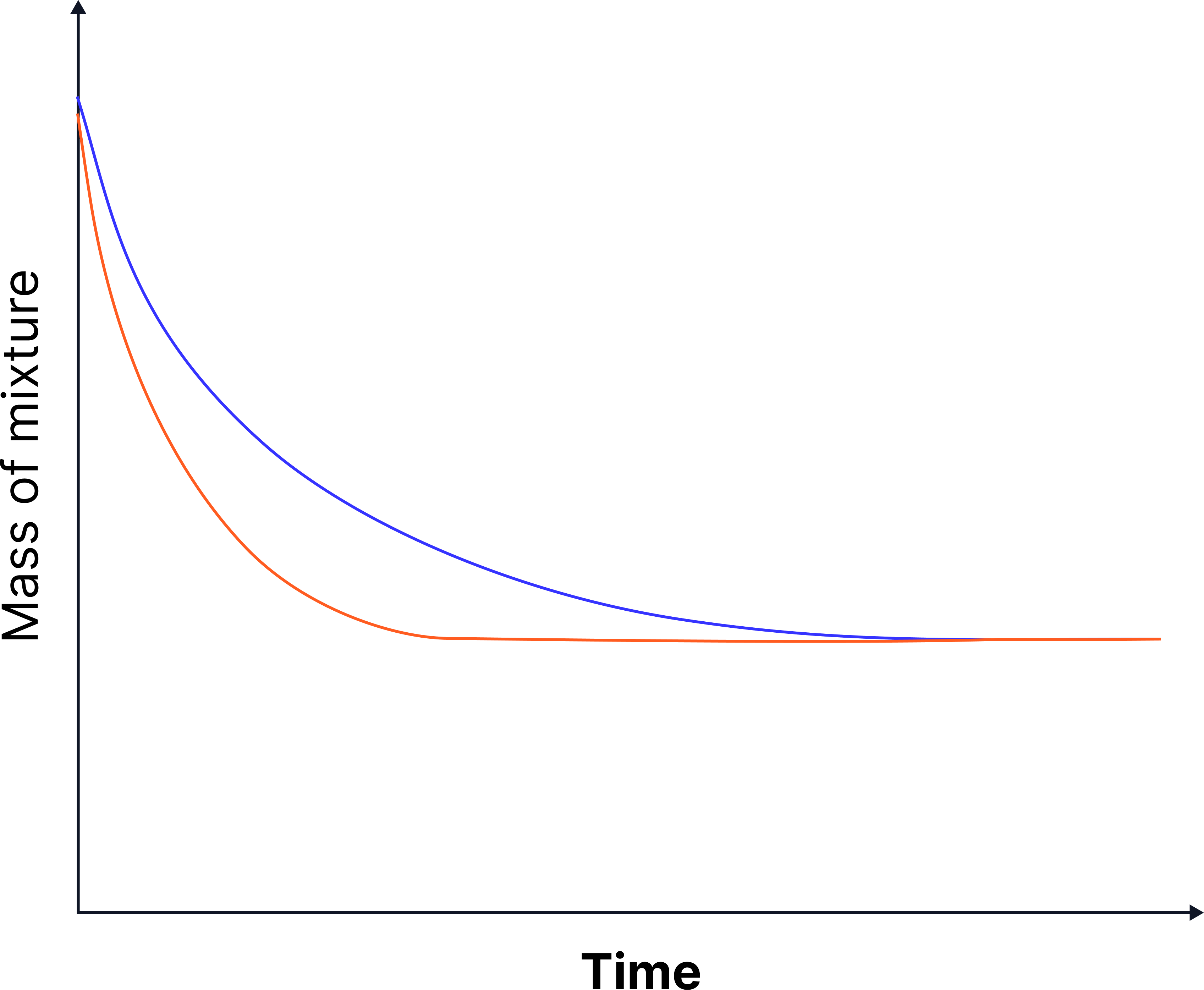 n) A student draws a mass-loss graph and finds the high-concentration curve reaches the final mass at the same time as the low-concentration curve.