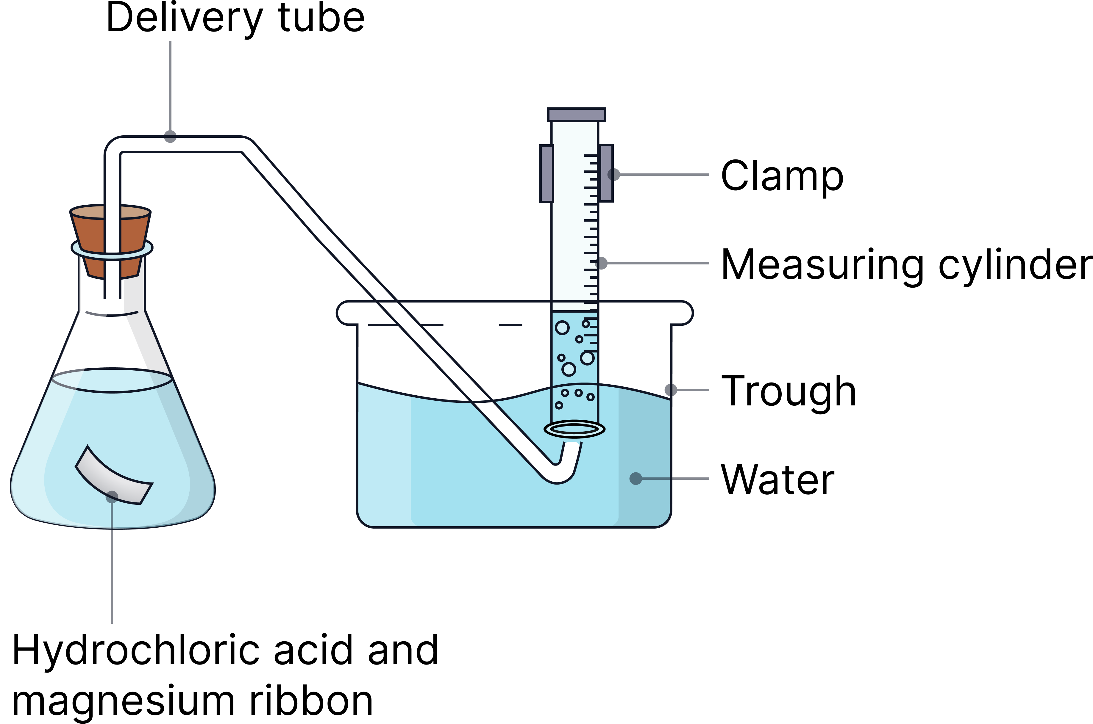 i) A student collects hydrogen gas during the magnesium and hydrochloric acid experiment.