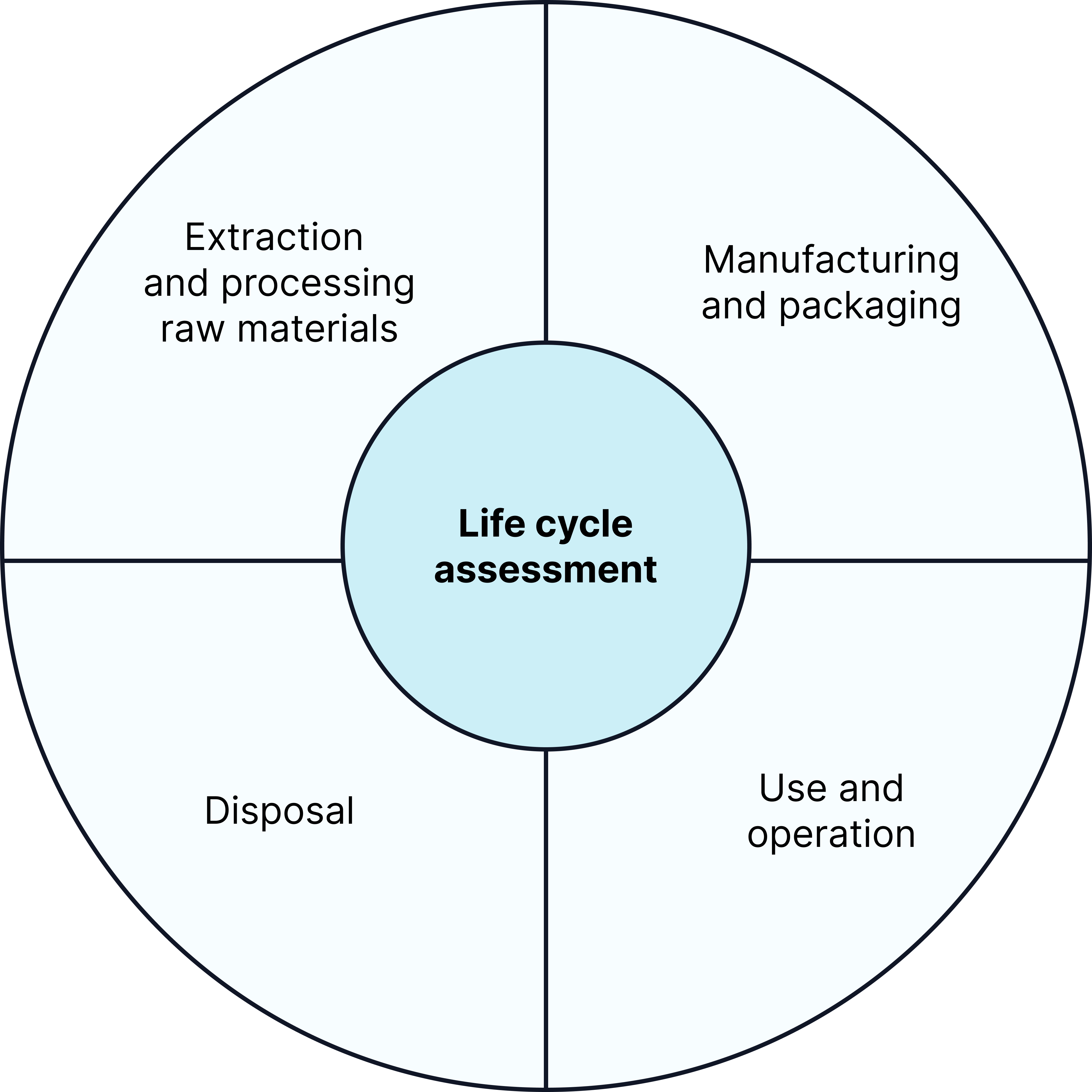 A Life Cycle Assessment measures the environmental impact of a product at each stage of its life:
