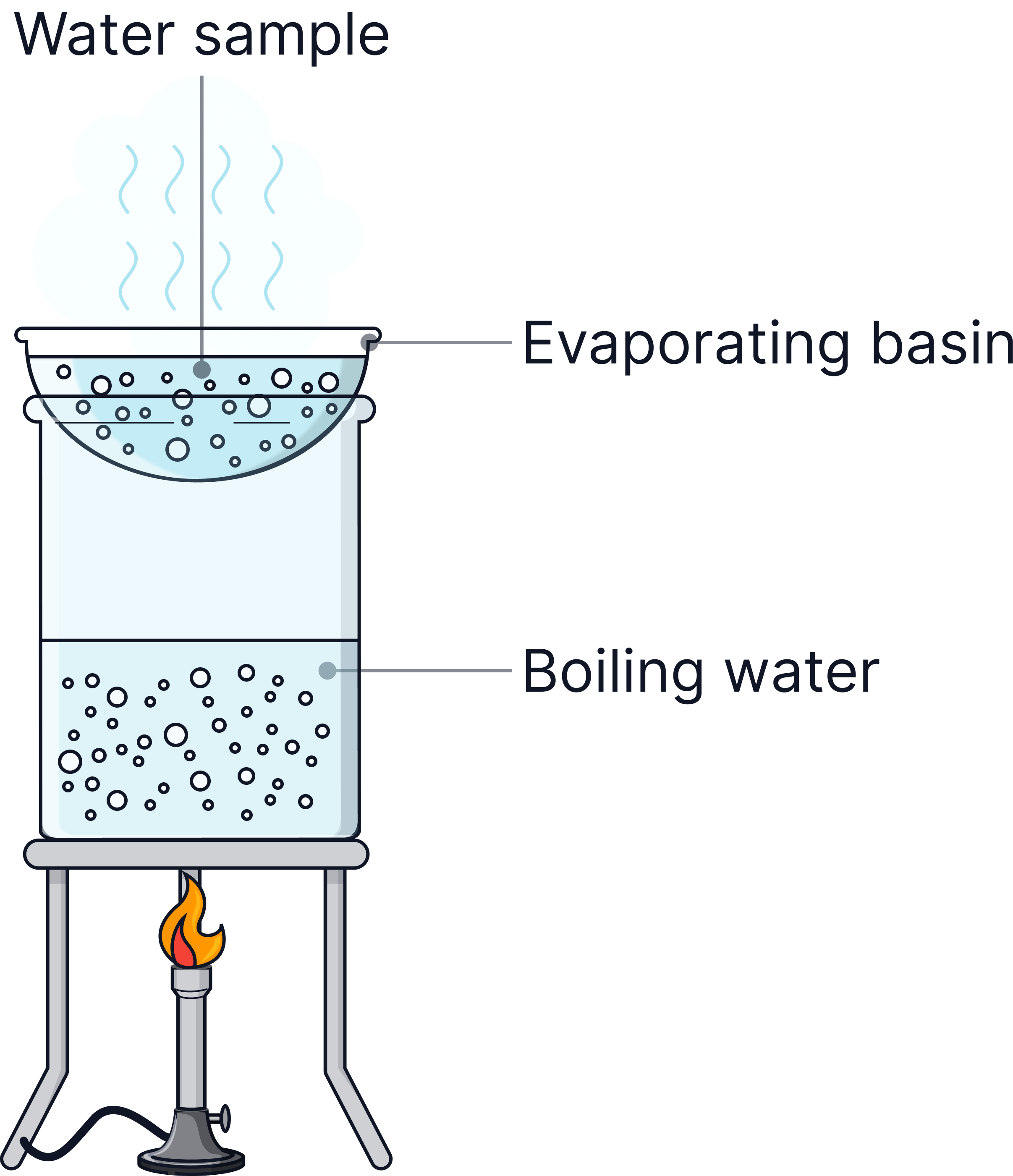Reweigh the basin → increase in mass = mas of dissolved solids.