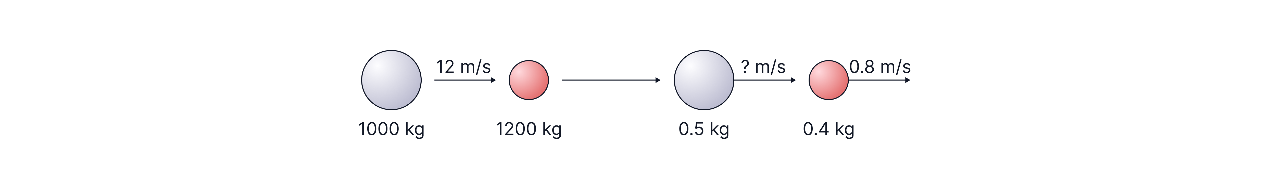 Example: On a pool table, the white ball (mass of ) is moving at and collides with the stationary red ball (). The balls collide and move off in the same direction. If we know that the red ball moves at , we can calculate how fast the white ball must be moving: