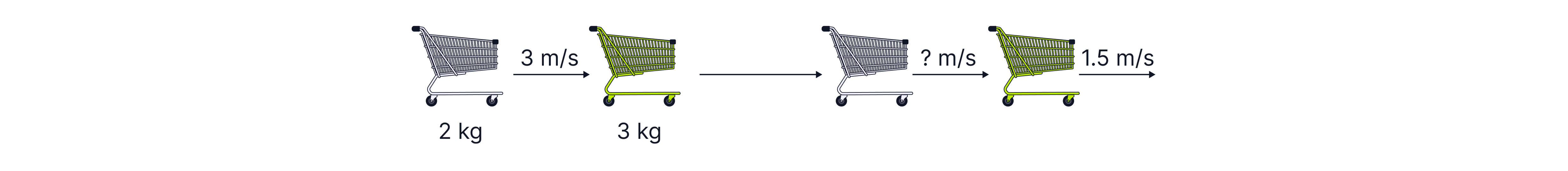 First we need to calculate the total momentum before the collision. Because cart B is stationary, the total momentum will be only the momentum of cart A: