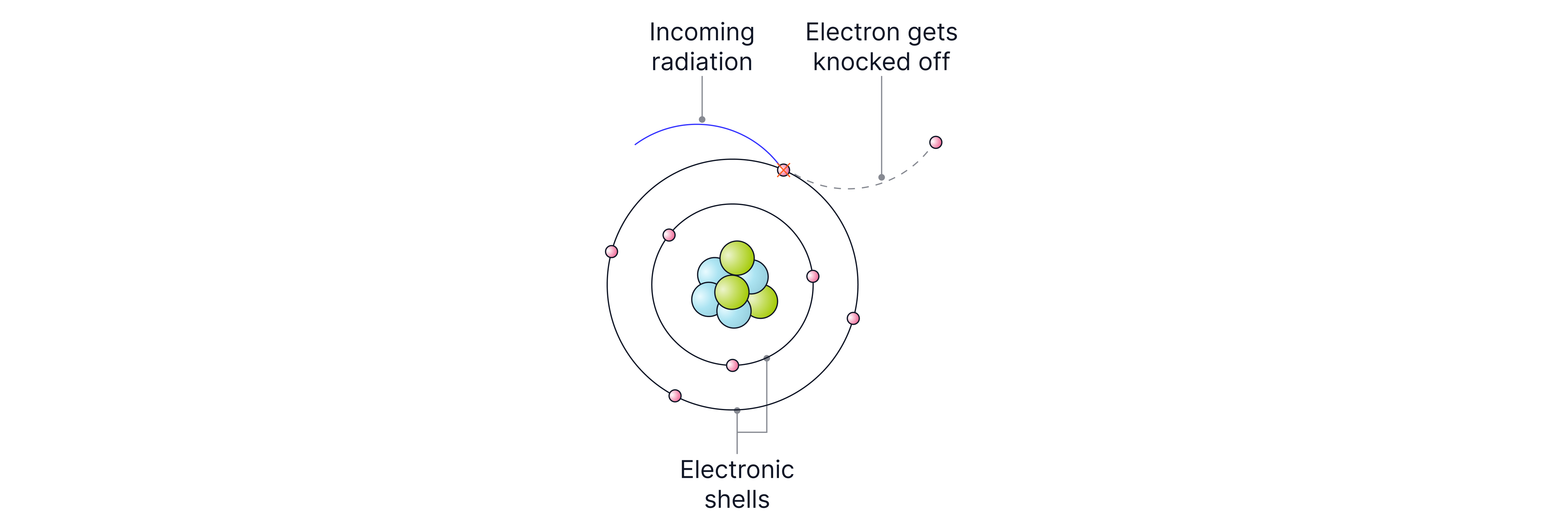 When we say radiation is ionising, we mean it has enough energy to knock electrons off atoms, turning them into charged particles called ions.