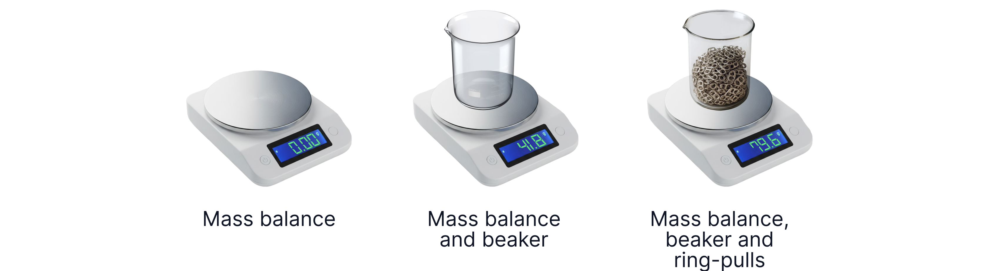 She collects ring pulls and measures them on a balance as shown below.