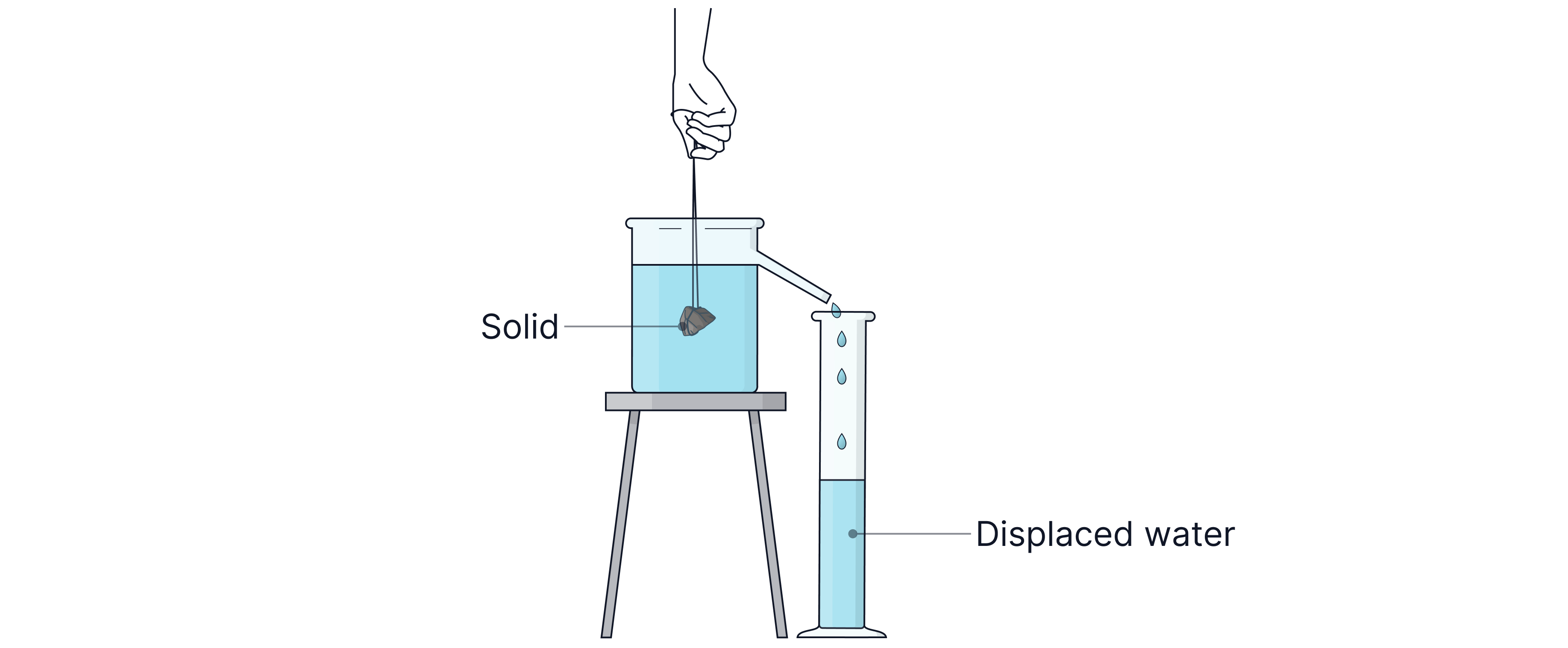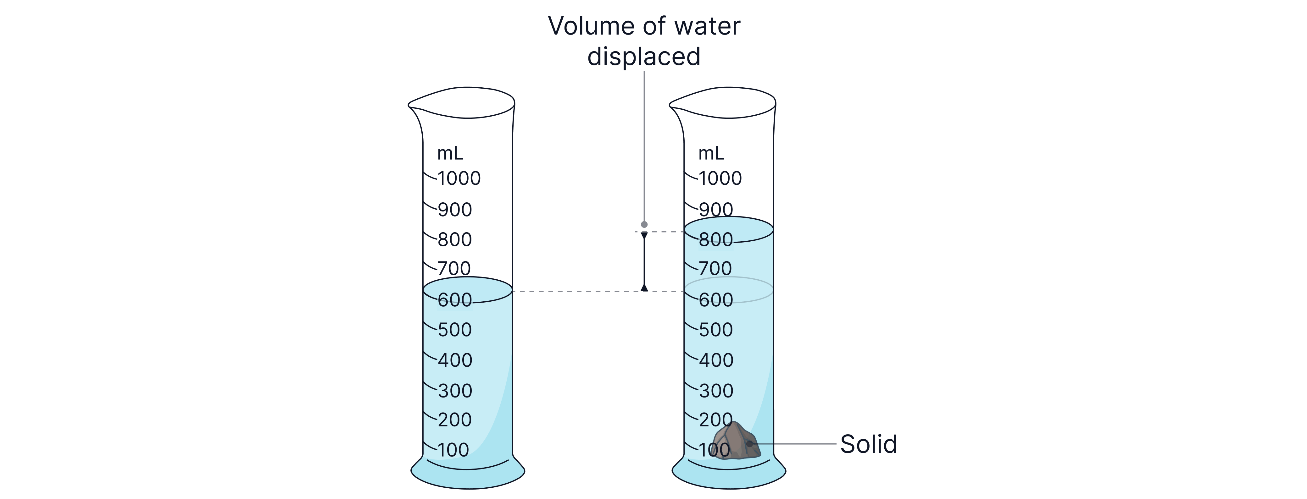 Take Note: If the object is less dense than water and will not sink, meaning we cannot find its volume, we need to attach a dense object with a known volume to our object to make it sink, then subtract its volume from the final volume.