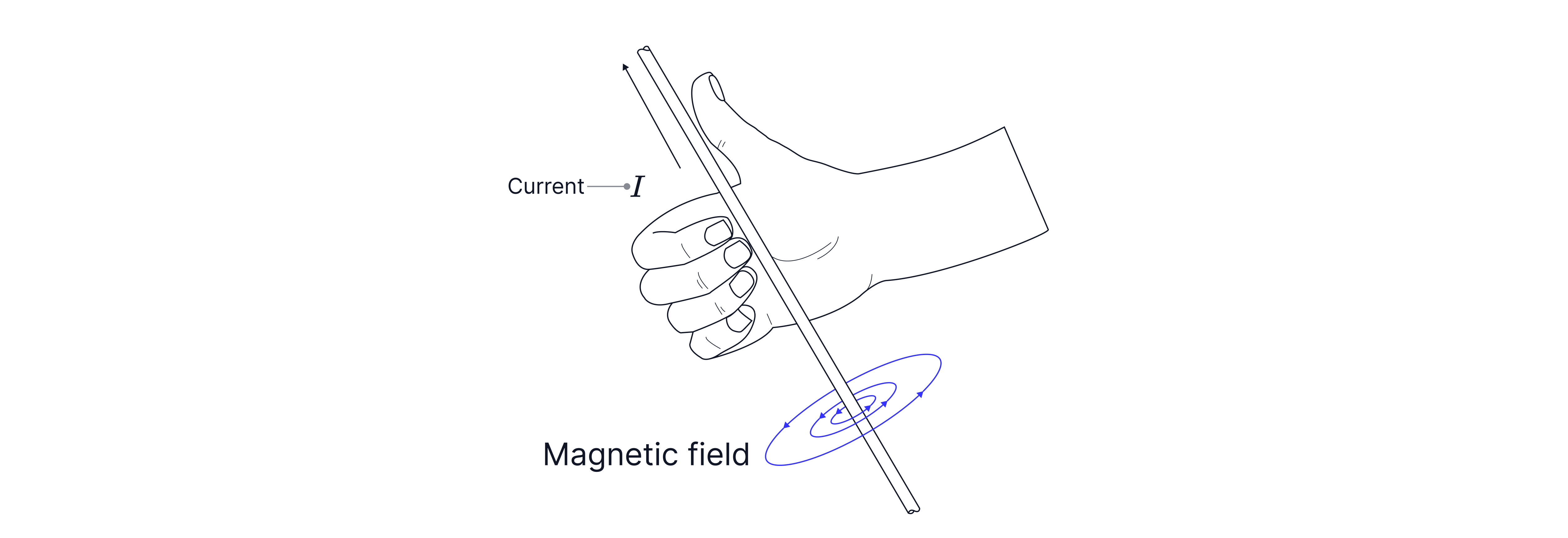 The direction of the magnetic field lines around the current-carrying wire is found using your right hand, where your: