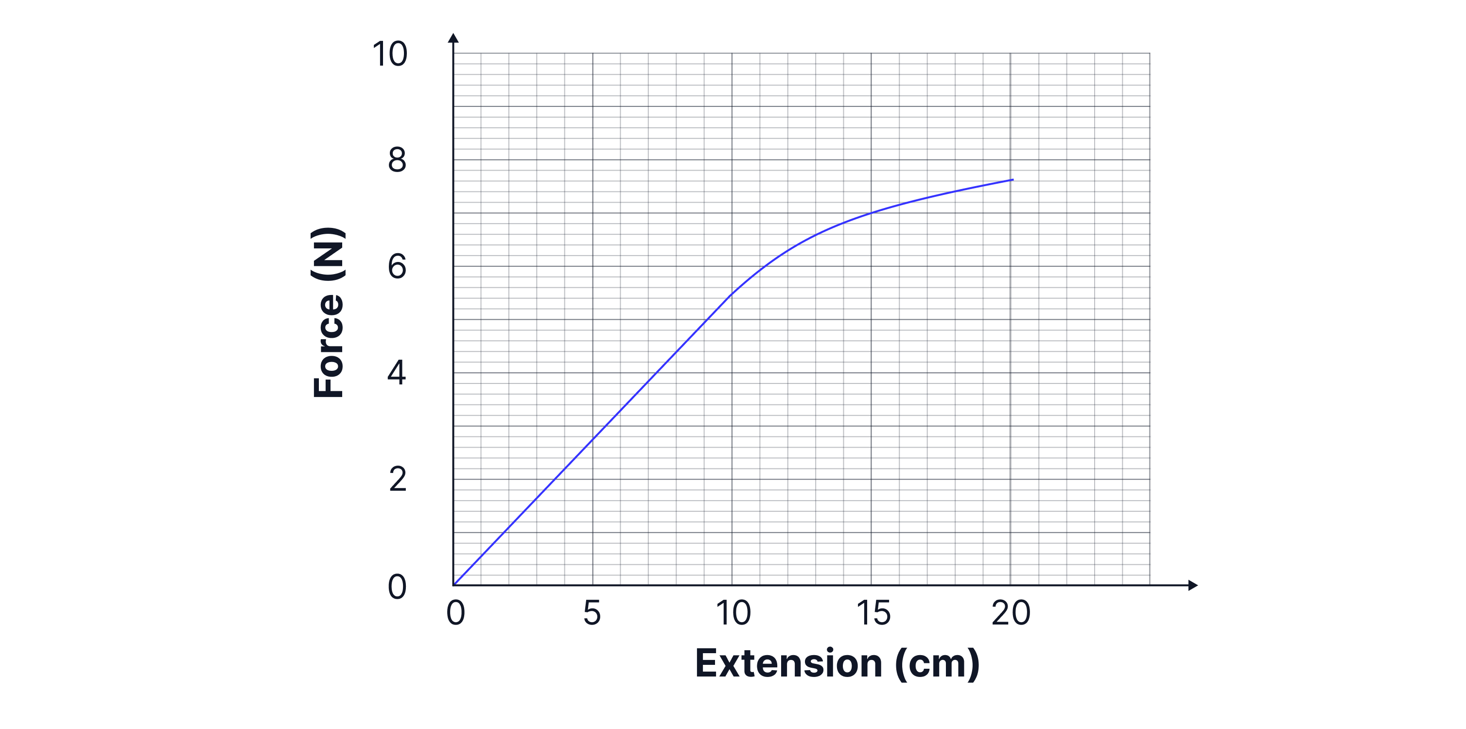 Plot a graph of the results, plotting force against extension