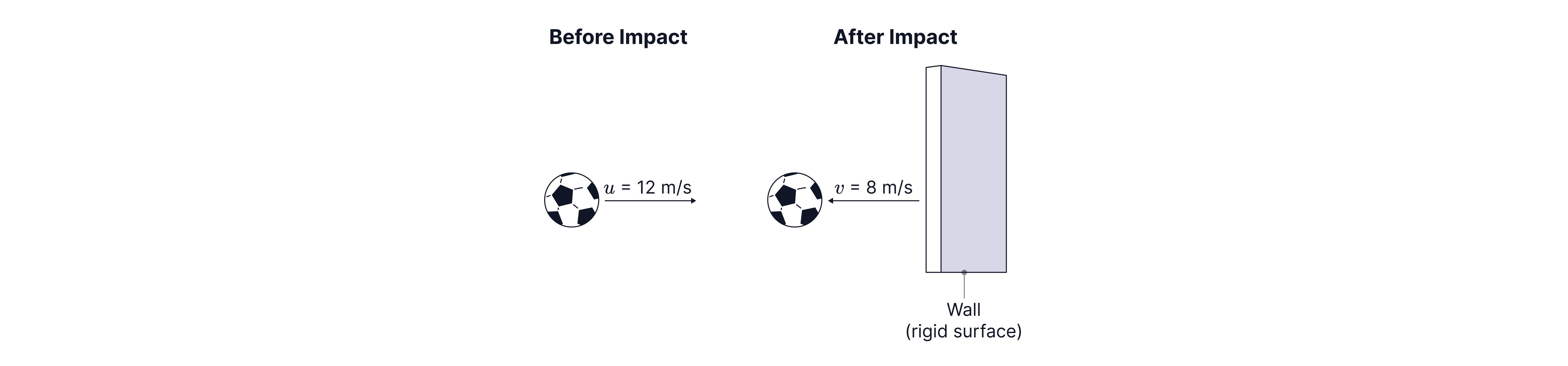 A football of mass is travelling at towards a wall. It rebounds straight back at .