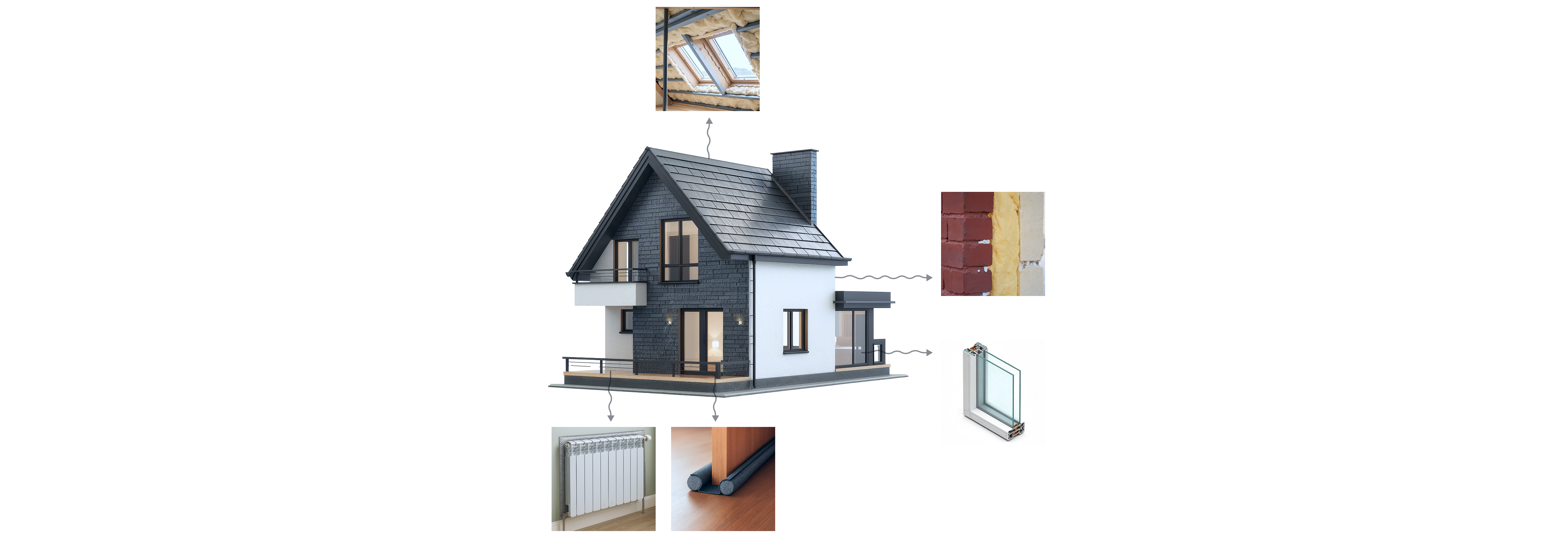 Loft insulation, double-glazed windows, cavity wall insulation.