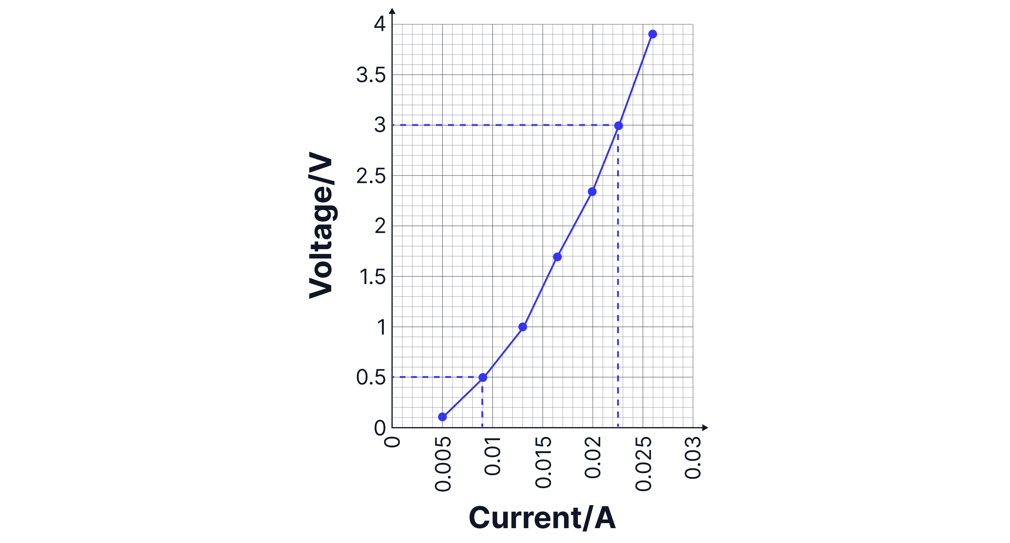 Repeat to obtain at least six readings of the current and potential difference by changing the variable resistor to change the circuit's resistance and thus the current.
