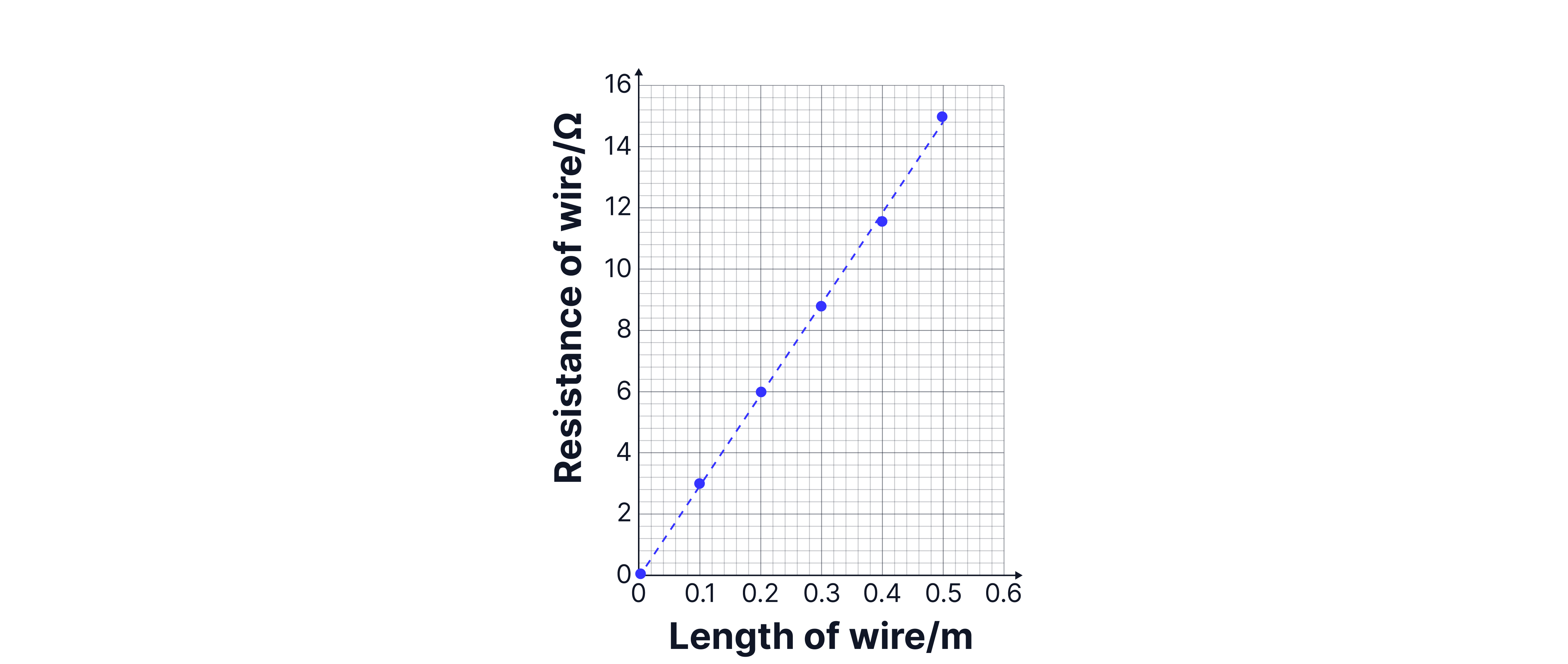 We could then plot these on a graph of resistance of the wire/ (y-axis) against length of wire/ (x-axis).