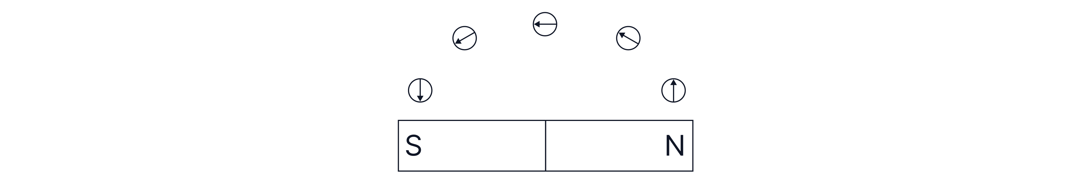 In the image above, we can see that as all the arrows on the plotting compasses are pointing out of the right, this end of the bar magnet must be the North pole, and as they are pointing towards and into the left, this end of the magnet must be the South pole.