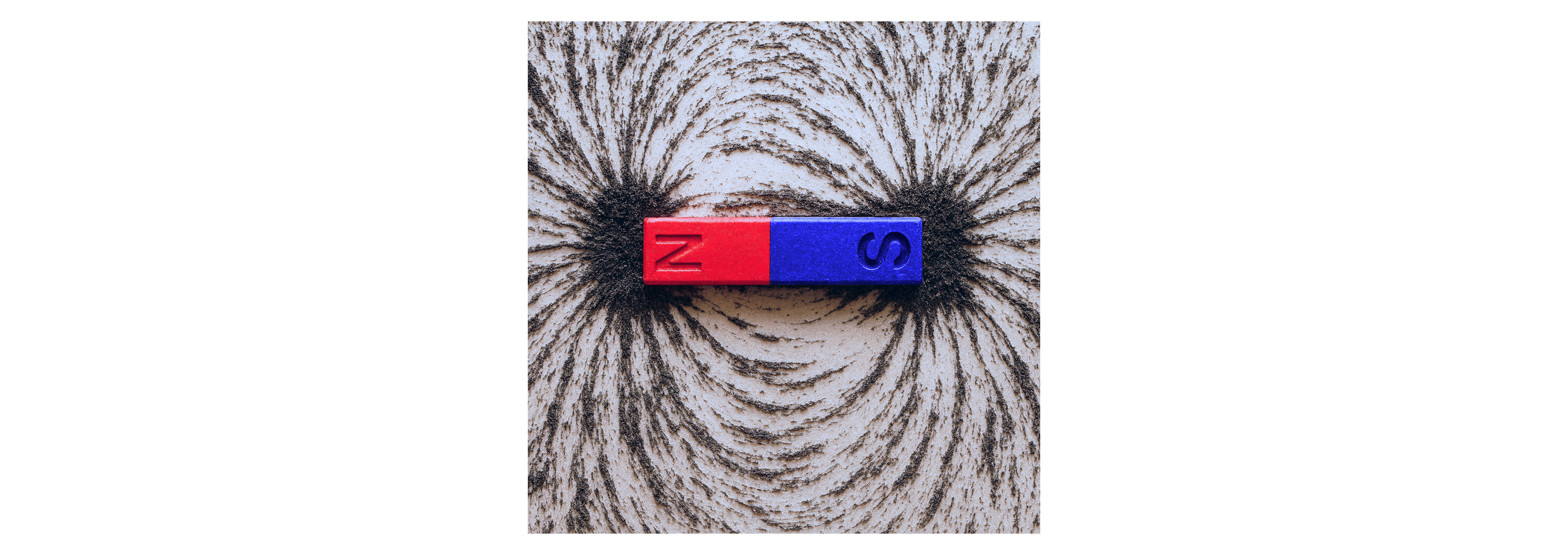 When the North pole of one magnet faces the South pole of another magnet, they feel a force of attraction, trying to pull the two magnets together.