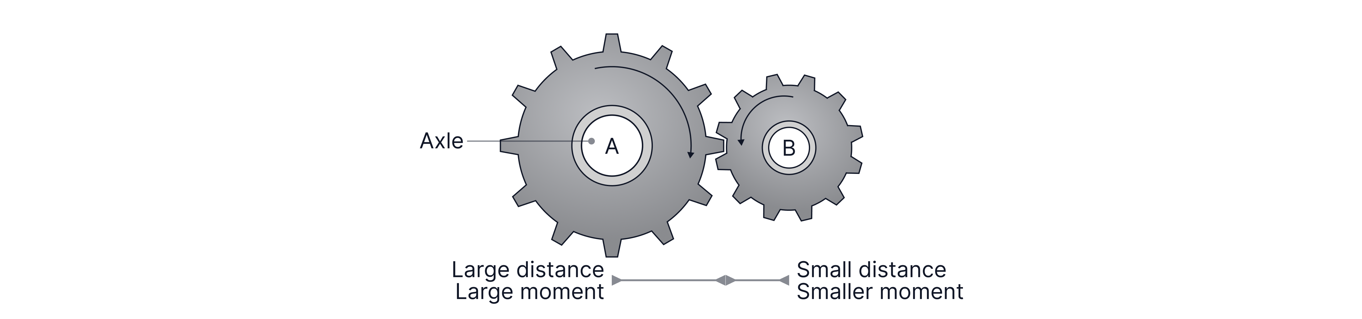 Both gears exert the same force on each other. Which one has a bigger moment? Explain why.