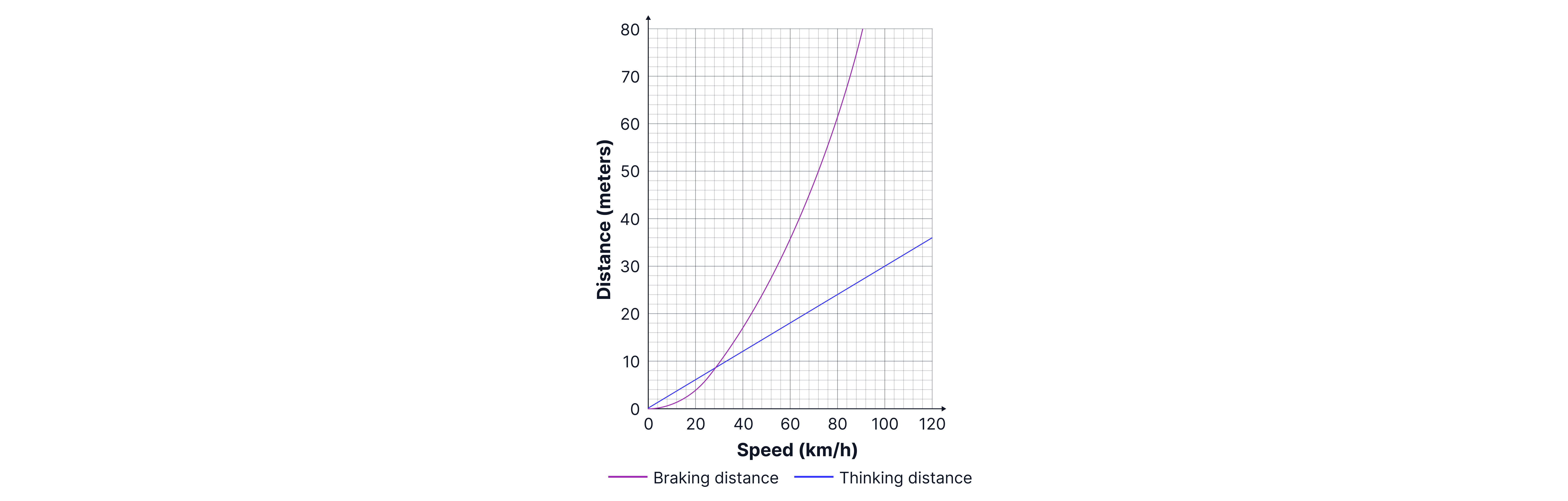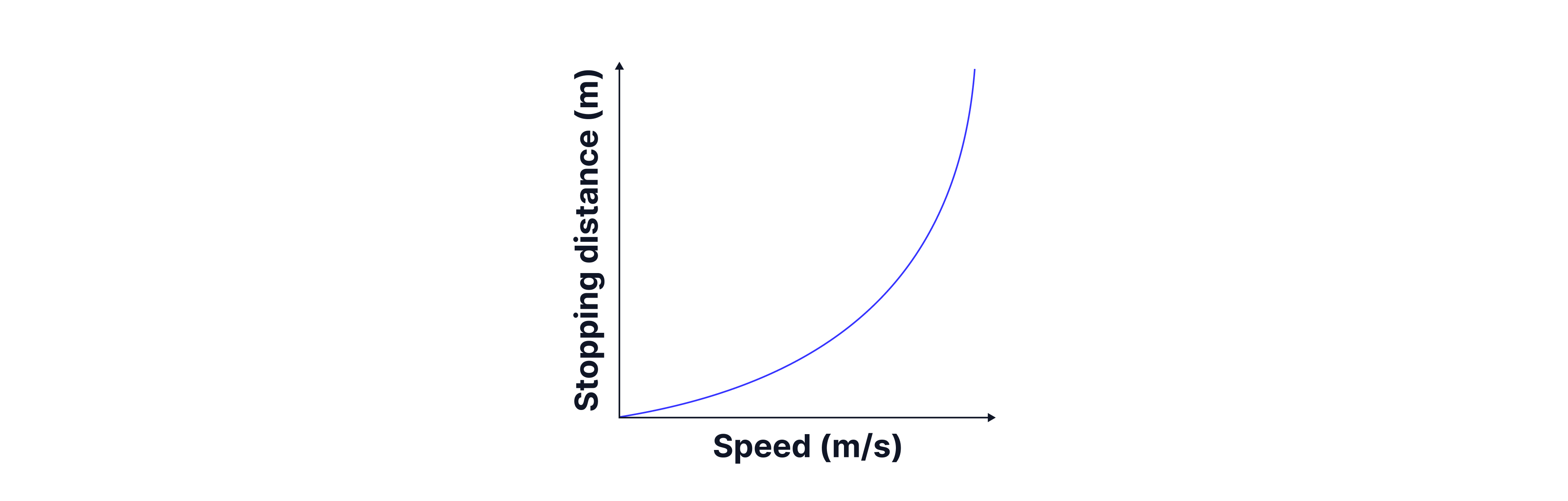 The graph below shows how stopping distance varies with speed for a particular vehicle.