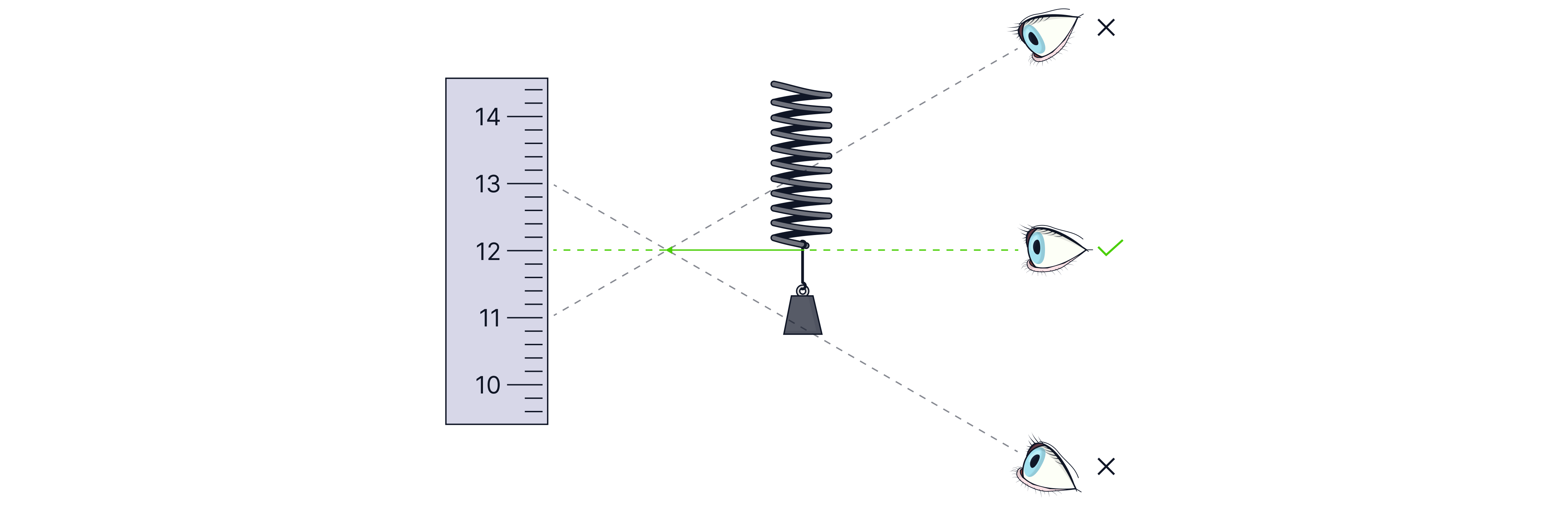 Another example of a random error is measuring the length of a stretched spring with a ruler. If I do not read the scale from eye level, I will get a result that is either too low or too high, depending on whether I am standing above the spring, looking down at the scale on the ruler, or below the spring, looking up. This is called parallax error.