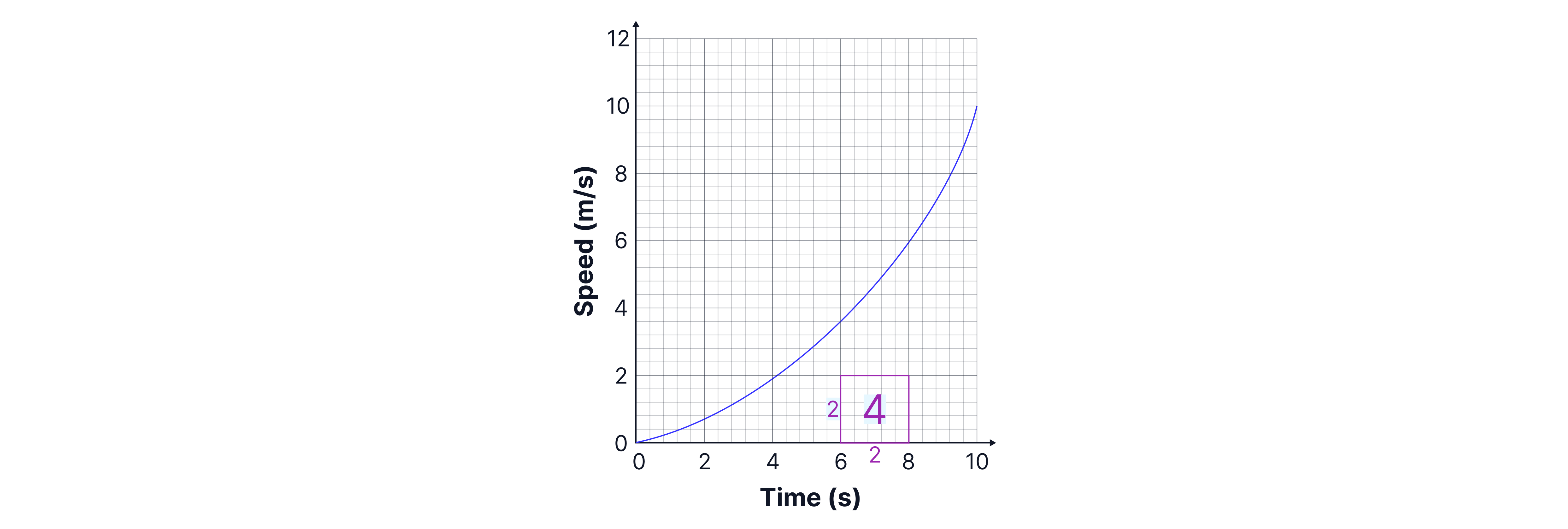 We can see in the speed- time graph above that the area under the graph can not be found by slitting the shape up into triangles and rectangles easily. But we can find the area of one large box and count the number of boxes beneath the graph.