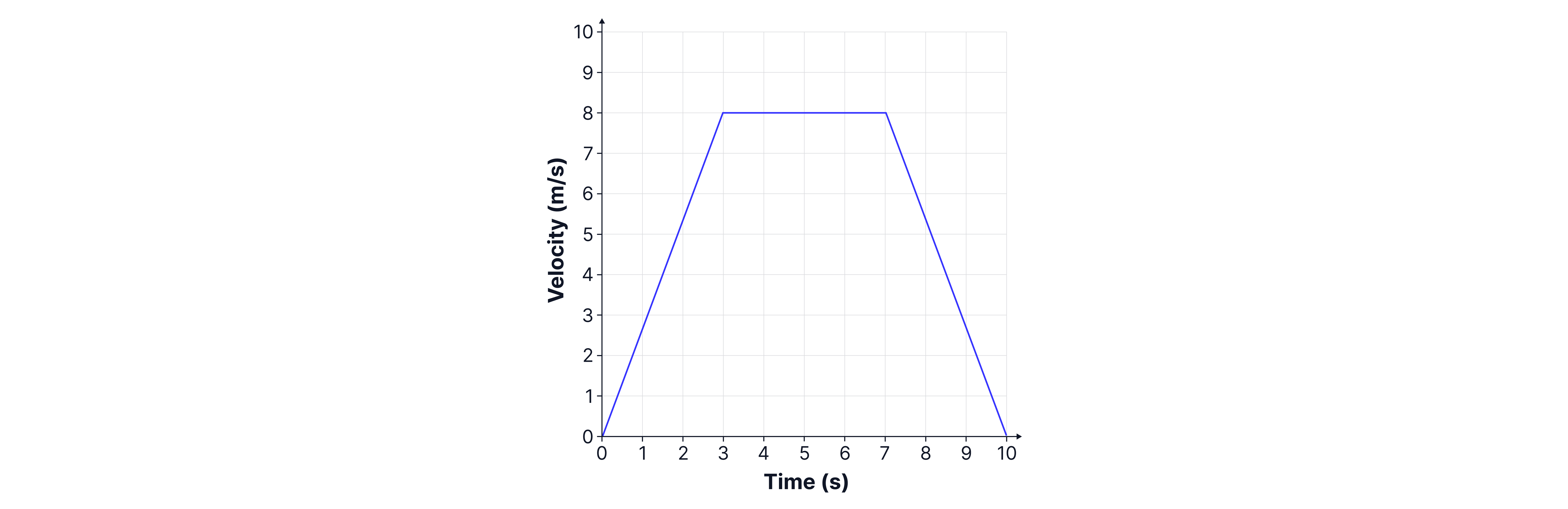 The velocity–time graph below shows the motion of a sprinter during a short run.