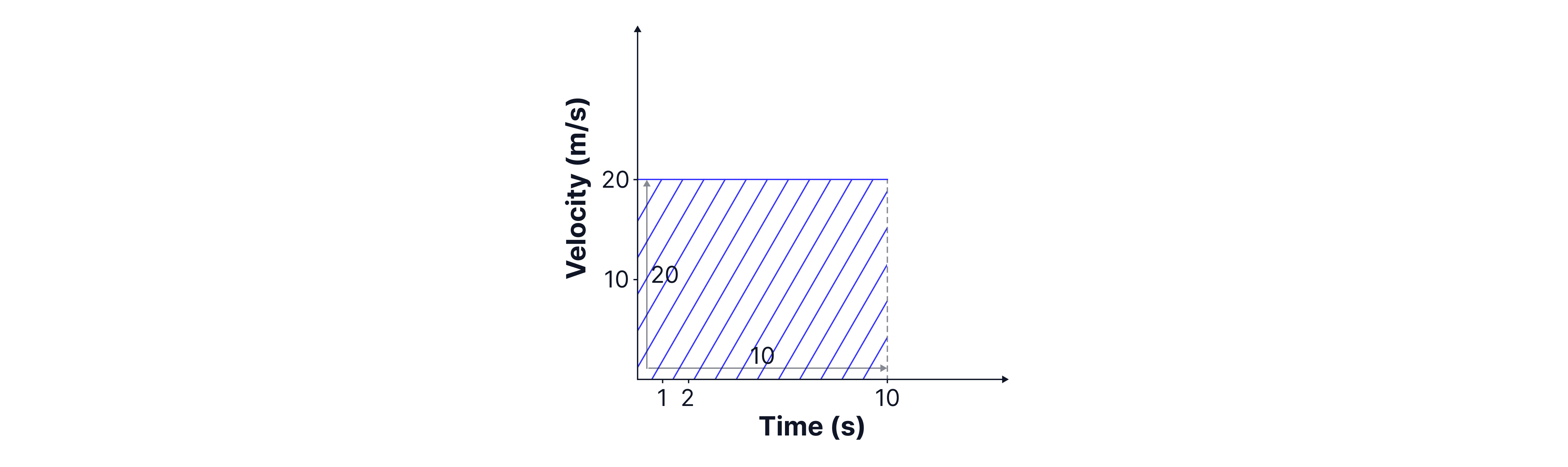 Area Under the Graph = Displacement, if a velocity-time graph, or distance travelled if a speed-time graph.