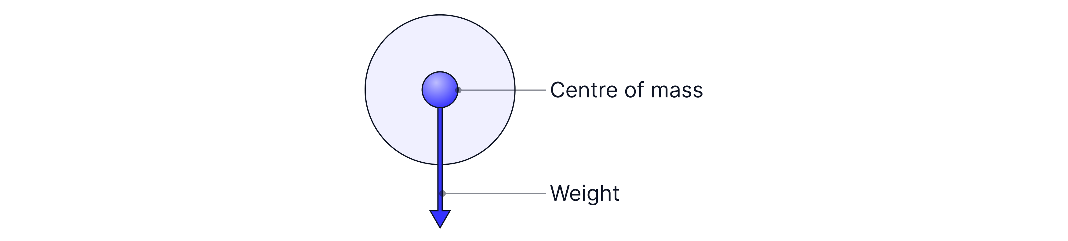 For a symmetrical object, the centre of mass is where the lines of symmetry meet - like in the sphere above, the centre of mass would be right in the centre.