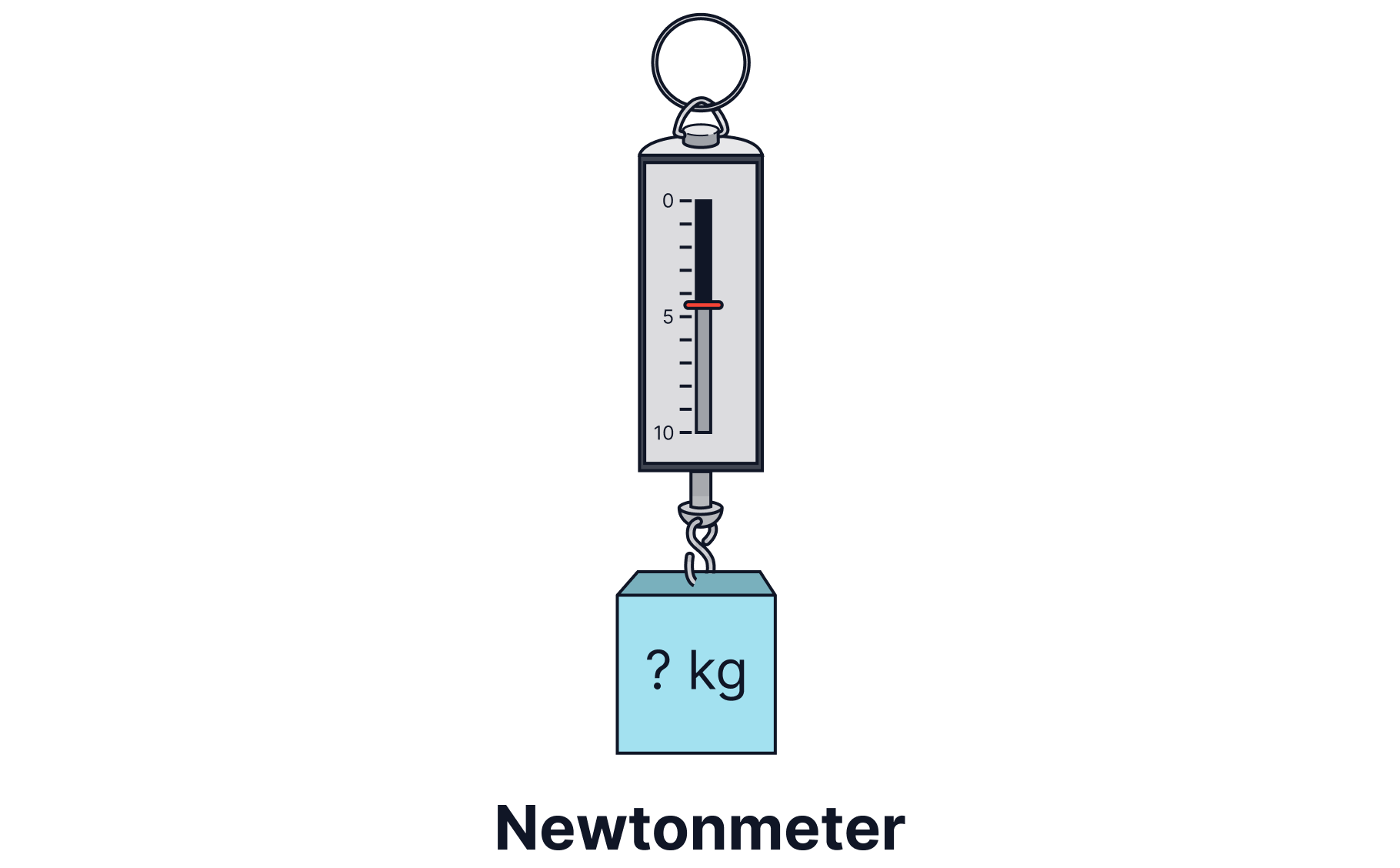 A student uses the newton-meter below to measure the weight of an object. Calculate the mass of the object on Earth. Use .